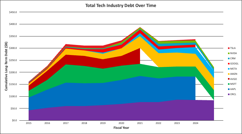 - Refinancing wave: $100B+ in tech debt matures 2025-2027, requiring refinancing at higher rates